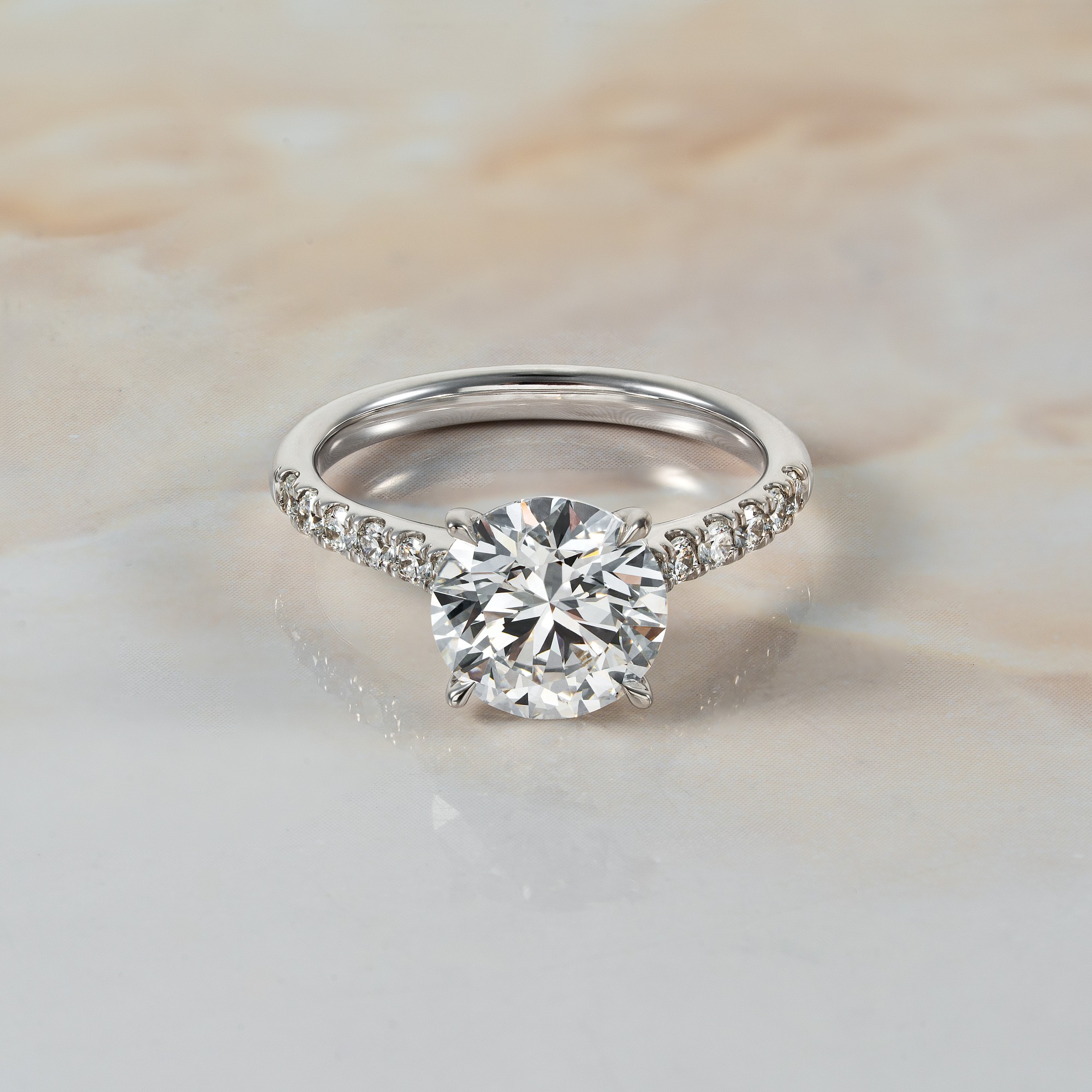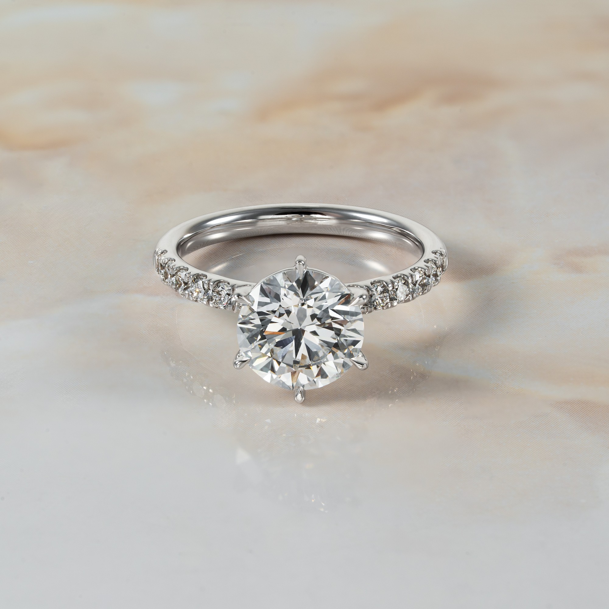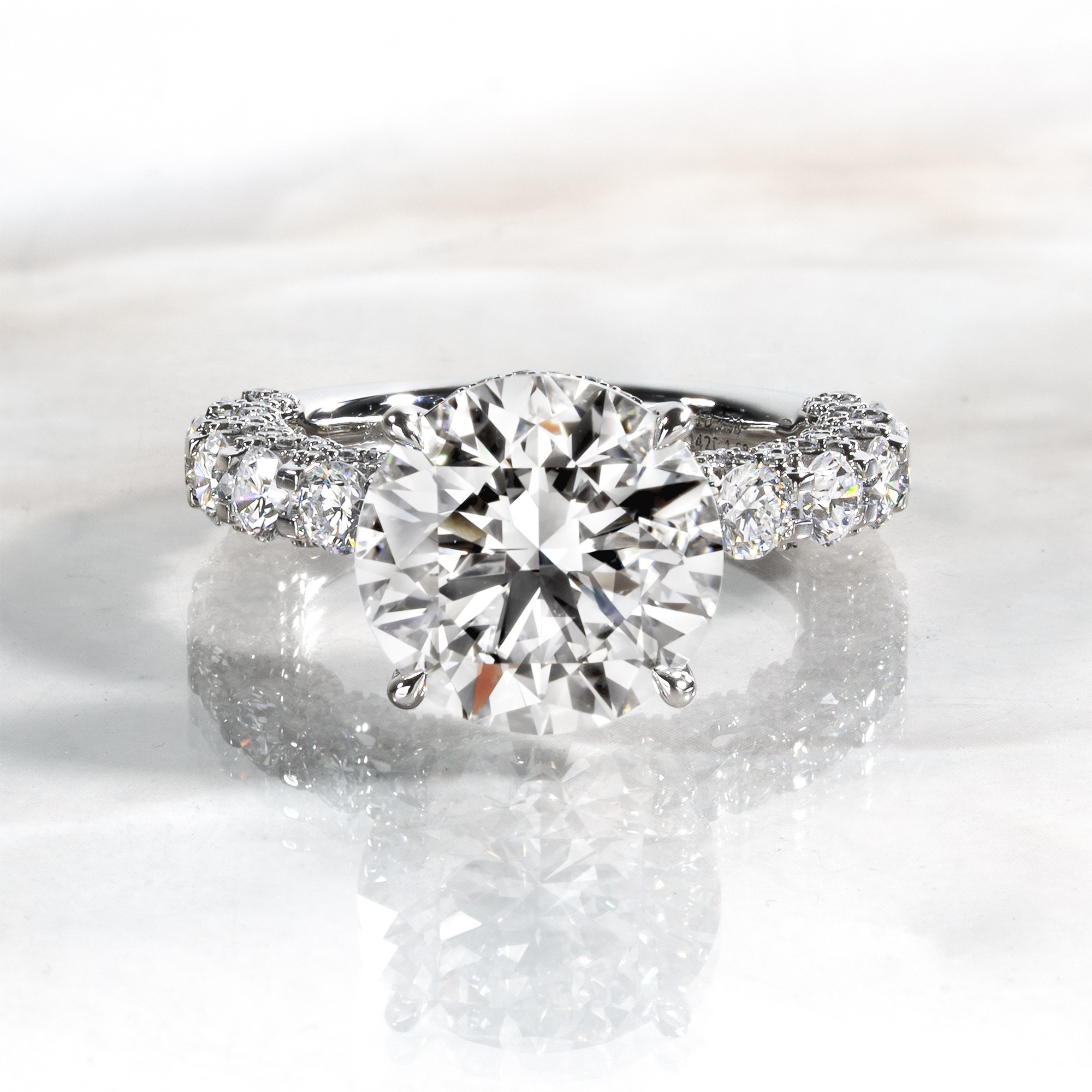 Disclaimer: You are currently purchasing an item which is available in our showroom. This item can be shipped within 3-5 days, depending on where you are. You may select the ring size (+/- 2 from the original ring size), but no other changes can be made to the overall design.