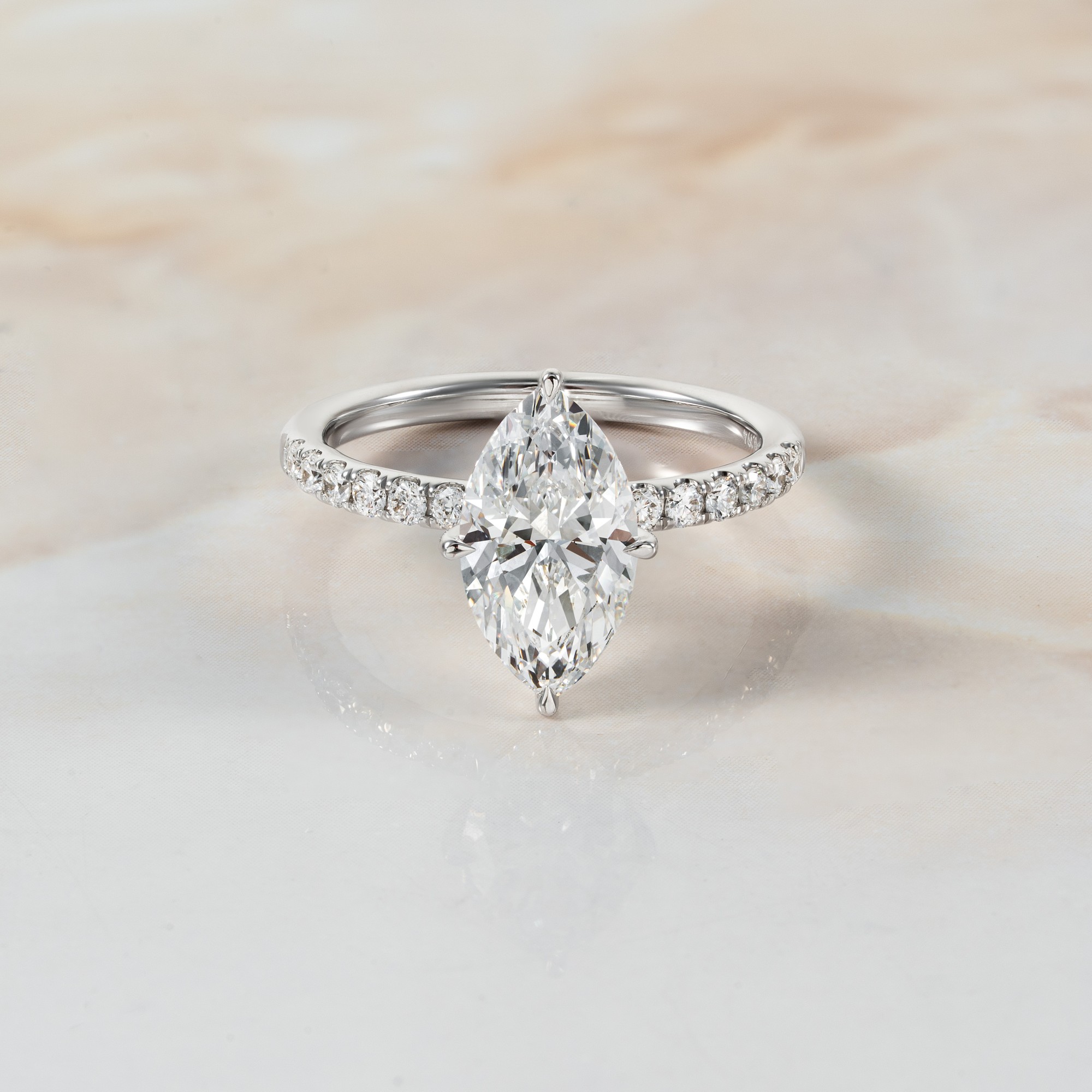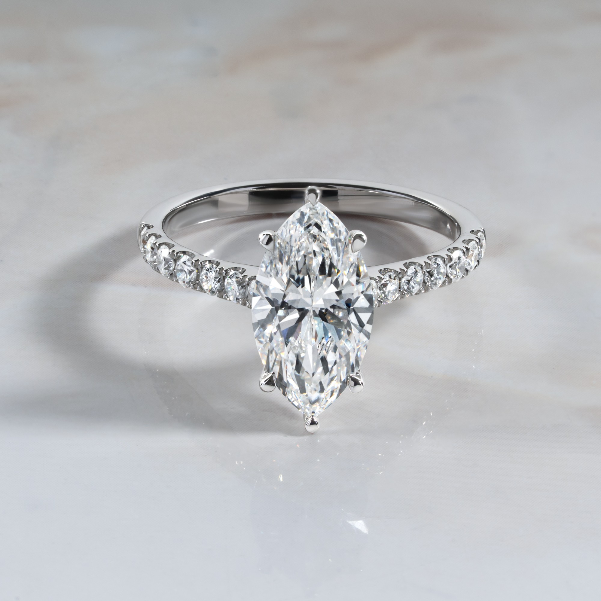 FDLR1843 - MAQ, 4.03ct. E VS1 IGI - Cathedral Pave Ring
